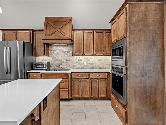 This beautiful and meticulously cared for home features 5 bedrooms and 3 full bathrooms. It offers the perfect blend of comfort, accessibility, and style. Designed with convenience in mind the home features handicap-accessible entrances, wide doorways and a thoughtfully laid-out floor plan to accommodate all lifestyles. Warm wood tile will greet you when you walk into the family room that opens into the large beautiful kitchen with quartz countertops. The pantry is a dream with custom shelves and under cabinet lighting w/ outlets for appliances. The eating area has double back doors that both open w/ a doggie door. The back bathroom has handicap bars, upgraded roll in shower w/ large built in seat and handicap toilet. The spacious primary suite features a beautiful and cozy fireplace, a luxurious ensuite bath and generous closet space. Upstairs you will find two bedrooms, one of which can be used as a bonus room & a full bath with upgraded tile. Additional highlights include a large backyard, tool shed, upgraded black wrought iron fence that extends your view into the natural area, extended 3 car garage w/ back door and patio, upgraded mailbox, full gutters, ceiling fans in all bedrooms and 2 inch blinds throughout the house! Also included is the washer and dryer, kitchen refrigerator and laundry room refrigerator! The neighborhood has fantastic amenities as well including a pool, clubhouse, fitness center, gathering hall and playground! You DO NOT want to miss this opportunity to own a beautiful home in a highly sought after Edmond neighborhood!