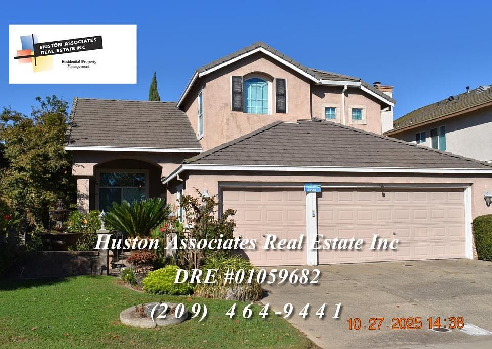 2729 Tejon Street, Lodi CA: Four Bedroom, 3 full Bathrooms, 2 story Home with a 3 car garage appx 1993 sqft. Water feature behind gated front entry. Tile flooring carpeting. Gas Range/oven, Microwave, Dishwasher Garbage Disposal. Washer Dryer included. Non-functional fireplace in Living Room. Separate Family Room. All the bedrooms are upstairs. Central Heat/Air. Fenced backyard. Alarm Camera System monitoring paid by tenant. No Pet. Renters Insurance required. Tenant pays for all utilities and landscaping services. $3200 Rent per month, $3200 Security Deposit (10-28-25)