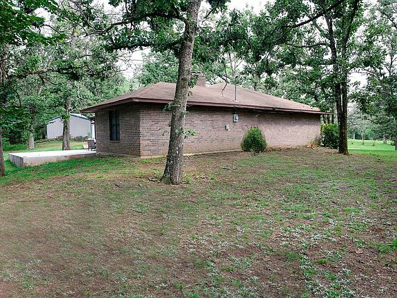 Country Get Away but in the City!! Custom Three Bedroom, Two Bath Brick home sits at the back of the subdivision and at the edge of the woods on approx 1.8312 acres. Vinyl plank flooring throughout, step down living room has a nice brick fireplace with shelving built on both sides. Kitchen has solid wood cabinetry, dual level breakfast bar eat-in-area and and pantry. Master bedroom has a built in entertainment center w/lots of shelving. Double garage w/ a small storage area & in addition a 600sqft Detached well insulated Double garage w/electricity .Long cement drive.HVAC recent dehumidifier added.Dbl paned windows. Newer extensive cement patio for entertaining or enjoying the view of nature. Tract is mostly wooded.