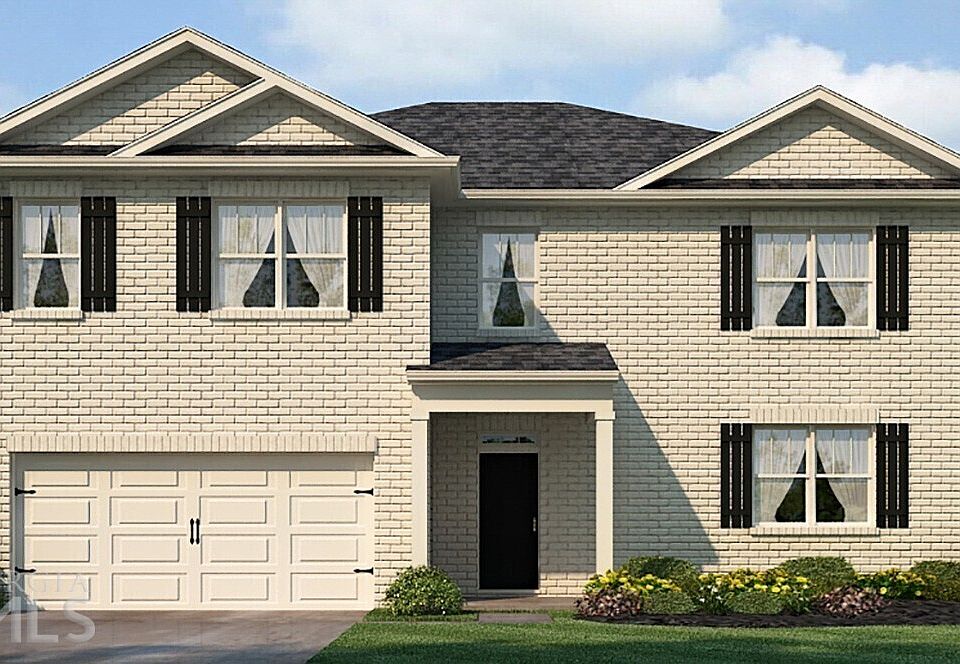 Located the Glen at Cascading Palms premier community in South Fulton County. Minutes from Fairburn Road and Camp Creek Parkway with easy access to I-20, I-85, and I-285. Spacious Jadyn 5 bedroom, 3 bathroom home with front flex room, perfect for formal dining or home office. Kitchen features exquisitely crafted gray cabinets with decorative crown molding, granite countertops, decorate subway tile backsplash, and stainless-steel appliances. Kitchen opens to family room with corner fireplace. Guest bed with full bath on main. RevWood by Mohawk wood plank flooring throughout main level. Spacious upstairs loft. Primary suite with shower, separate tub and walk-in closet. Stock Photos- NOT of actual home.