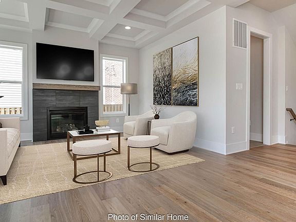 Stylish fireplaceRear patioDramatic beamed ceilingRefined coffered ceilingPrivate studyOversized walk-in closetsExpansive primary suite