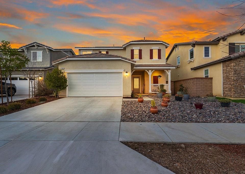 Welcome to Camden Place at Menifee Town Center! This stunning, energy-efficient home, built in 2020, offers the perfect blend of modern style, functionality, and prime location. Nestled in the highly sought-after Camden Place at Menifee Town Center, this home is just minutes from top-rated schools, shopping, dining, and easy access to the 215 Freeway. Step inside and experience spacious open-concept living, featuring energy-efficient windows, LED lighting, a tankless water heater, and PAID OFF solar for ultimate efficiency and cost savings. The gourmet kitchen is the heart of the home, boasting granite countertops, sleek modern appliances, a walk-in pantry, and a large center island with seating perfect for gatherings and entertaining. The seamless flow into the dining and living areas creates a warm and inviting space for family and friends. This home offers spacious bedrooms, including a guest suite with a private bathroom makes multi-generational living, guests, or a home office a breeze. The beautifully designed backyard is ideal for relaxation, featuring a Catio for your furry friends, low-maintenance landscaping, and a covered patio for entertaining. Enjoy resort-style living with community amenities including a sparkling pool, walking trails, a clubhouse, dog parks, and playground's all designed to enhance your lifestyle. With PAID OFF solar, this practically brand-new home is an incredible opportunity to own in one of Menifee's most desirable communities. Schedule your showing today!