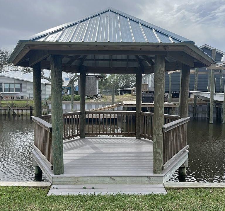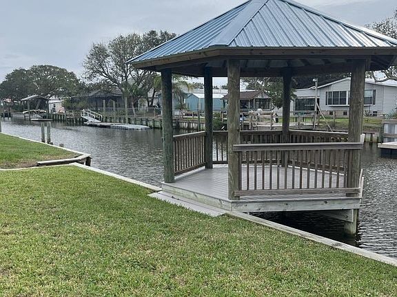 Treasure Beach canal front doublewide mobile home with easy access to the intracoastal waterway with a beautiful Gazebo built in 2021 that sits right on the water to soak up the Salt life! Bulkhead was permitted in 2013 . Has an Extra Long concrete driveway. This 3 bedroom /2 bath mobile home is being sold "As Is" and due to the water damage is not livable in this condition. Land Value - Treasure Beach has 2 Beach Access easy walk to Toes in the sand. Check with Building dept. for impact credits and current septic and electric hookup is there but not warrantied. Warning - Do not walk the property without permission.