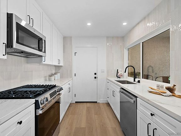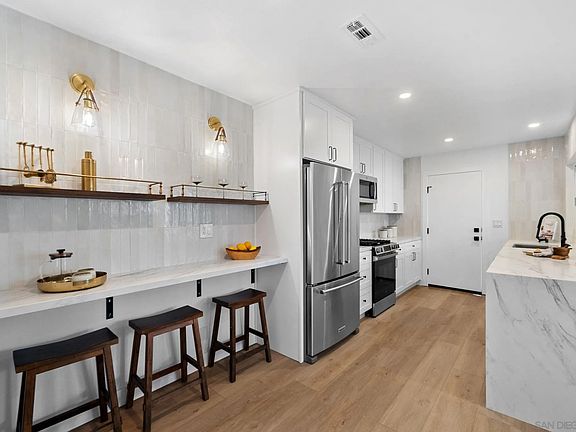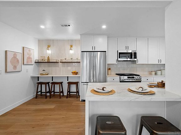 Welcome home to this freshly renovated and beautifully updated Encinitas townhome. Filled with natural light and designed for modern living, this 3-bedroom, 2.5-bathroom home has undergone a complete transformation and is sure to impress. The downstairs features an open-concept layout, with a stunning plaster fireplace as the focal point in the living room. The custom-designed kitchen shines with new cabinetry, open shelving, quartz countertops, and stainless steel appliances. White oak-style luxury vinyl plank flooring flows throughout, complemented by brand-new windows and sliders that brighten every space. Upstairs, the primary suite offers a private retreat with its own deck—perfect for morning coffee or relaxing at sunset. The primary bathroom is spacious and stylish, while two additional upstairs bedrooms provide ample space for family, guests, or a home office. Step outside to your private patio, ideal for BBQs, relaxing, or gardening. An attached two-car garage with laundry adds convenience for storage and parking. Situated in a quiet and welcoming community, this home includes access to excellent HOA amenities, such as a pool, clubhouse, playground, and tennis courts. Walking distance to top-rated schools and just minutes from world-class beaches, downtown Encinitas, and a variety of shops and restaurants. Move-in ready with thoughtful upgrades, this home offers the best of style, comfort, and location. Don’t miss this opportunity to make it yours!