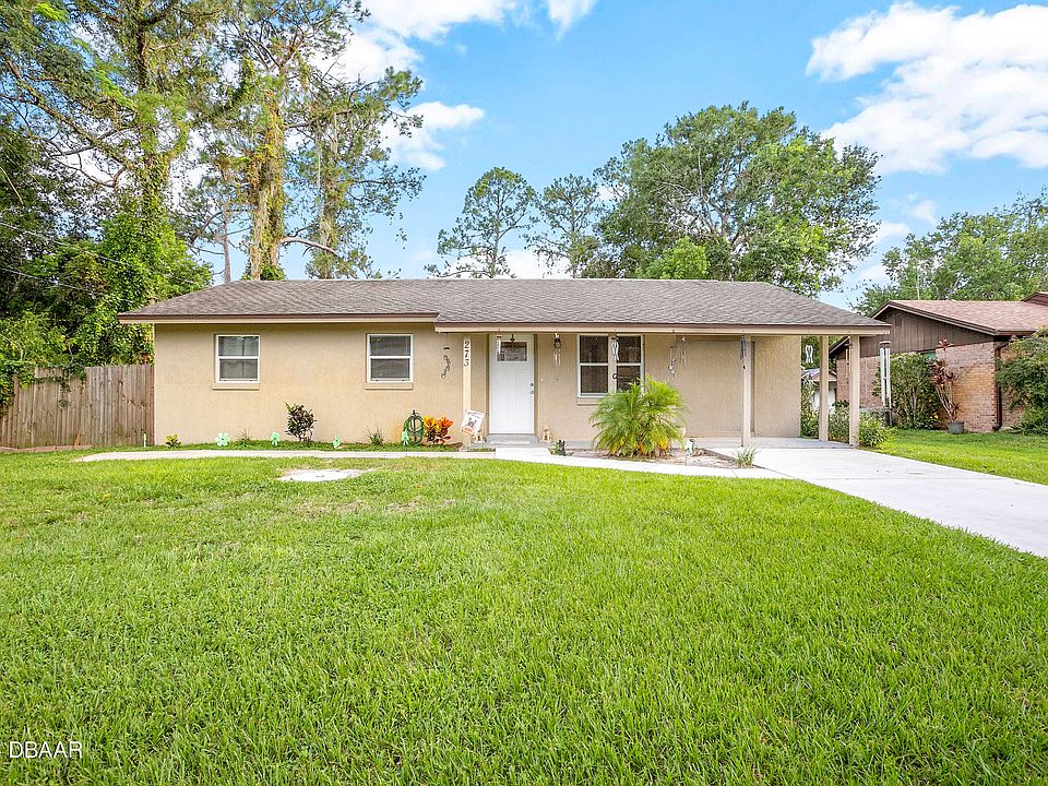 Welcome home to a life of comfort, convenience, & cherished moments in this 3-bedroom abode w/HUGE fenced yard & giant outbuilding that could be your Mancave...or even SHE-shed? Imagine hosting gatherings, creating a serene garden oasis, utilizing the generous yard for various recreational pursuits...or as the current owner does: PUPPIES! But, let's talk about the inside of this cute casa with a thoughtfully designed interior that exudes warmth and comfort in an open concept plan. Modern stainless-steel appliances in the kitchen add a touch of elegance. And, the inclusion of a washer & dryer makes this gem check all your boxes, right? What truly sets this home apart is its location, nestled in the heart of serene Debary; providing easy access to various amenities and attractions from the nearby scenic Gemini Springs, to the SunRail station just a stone's throw away. For those who frequently venture beyond the city, the close proximity toI-4 and 17-92 ensures quick & efficient access to major highways & roads, making your daily commute a breeze. Don't miss this exceptional opportunity to call this charming little house your own. Embrace the peace and beauty of Debary, Florida, while still being close to everything you need, right here at 273 Debary Dr!