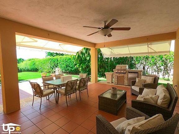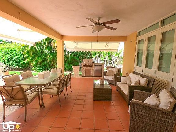 One story house "Golfer Model", three(3) bedrooms, three(3) complete bathrooms, one half bathroom, All furnished & equipped! Great unique location, close to all Resort amenities! Open layout, with living, dinning, family T.V. areas and kitchen. Very comfortable kitchen with access direct from the garage, Stainless Steel appliances( refrigerator, dishwasher, stove top with downdraft,microwave and freezer), Laundry room with full size washer & dryer... Beach & Golf membership available to be transferable to the Lessee(at additional cost). Nice back yard, with roofed terrace featuring BBQ, fridge, retractable awning, ceiling fan and a very private environment. Big, fenced backyard...Double carport, Golf cart garage, golf cart, Equipped with Power generator with automatic transfer switch and Water Cistern...All air conditioned... LOOKING FORWARD TO ASSIST YOU...CALL NOW ..