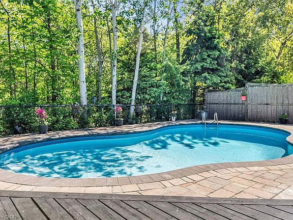 This executive residence on a premium ravine lot with a private saltwater pool is a rare find in Oakville's highly sought-after Lakeshore Woods community. Backing onto serene green space, it offers both privacy and convenience, just minutes from the lake, Bronte Harbour and scenic wooded trails.With more than 3,200 square feet of finished living space (including the main floor, second floor and finished basement), the main floor features an open and inviting layout with rich hardwood flooring and sun-filled windows framing tranquil views of the ravine. At the heart of the home is a fully renovated chef's kitchen with quartz countertops, stainless steel appliances, a stylish backsplash and an oversized island that seats six. The kitchen flows into the family room with a gas fireplace and direct views of the pool and forest beyond. Step outside to your own backyard retreat. A resort-inspired setting with a saltwater pool, lush landscaping and multiple areas to dine, lounge and gather, all surrounded by the beauty of nature. Upstairs, four spacious bedrooms include a luxurious primary suite with dual closets and a spa-like ensuite complete with an oversized glass shower, corner soaker tub and heated towel bar. A second bathroom with double sinks, a glass shower and heated towel bar serves the remaining bedrooms.The finished lower level provides exceptional versatility with a home theatre and projection screen, a dedicated office with walk-in closet, and a fifth bedroom that is perfect for guests, teens or extended family. This is a rare opportunity to own a ravine-lot property with a private pool in one of Oakville's most desirable lakeside neighbourhoods. Known for its natural beauty, family-friendly amenities and vibrant community spirit, Lakeshore Woods is the perfect place to call home.