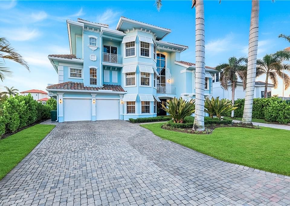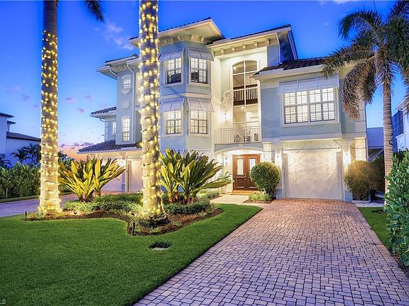 Luxury Waterfront Smart Home in North Naples – Gulf Access, No HOA, Weather Wise Experience luxury coastal living in this custom-built Stiles-Sowers 3-story smart home with direct Gulf access via Wiggins Pass, Pool, Spa, boat dock and countless upgrades! Designed for storm readiness, the property includes impact-resistant windows, whole house generator, flood panels, buried LP gas tank, multiple sump pumps, and elevated pool equipment housing. Integrated smart-home and security systems provide remote control of lighting, climate, music, temperature, and security for effortless living. The ground level includes a spacious game room with billiards, full bath, and cabana suite, plus multiple garages with epoxy floors, built-in storage, refrigerators, and workbench—perfect for guests, in-laws, or hobbyists. The main living level features an open-concept coastal design with coffered ceilings, travertine stone flooring, quartz counters, and custom cabinetry. A formal dining room with casement windows, gourmet chef’s kitchen with gas range, oversized island, and gathering bar, plus a wet bar with wine cooler and ice maker, make entertaining seamless. A gas fireplace with lighted built-ins adds warmth and sophistication. The owner’s suite spans the top floor with a private den/office, spa bath with Jacuzzi tub, custom closets, wood flooring, and private balcony. Additional bedrooms are generously sized with designer finishes. Enjoy resort-style outdoor living with multiple balconies, covered seating areas with ceiling fans, integrated speakers, expansive paved deck, and a heated pool & spa. The property’s captain’s walk dock, 15,000 lb boat lift, and seating deck create the ultimate waterfront retreat. Set on a professionally landscaped, fenced lot with dual brick paver driveways, this premier address west of US-41 is walkable to Delnor-Wiggins State Park, white-sand beaches, shopping, dining, entertainment and top Naples schools.