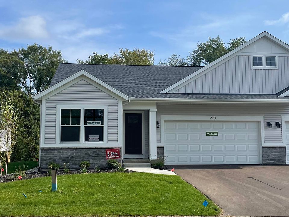 Open house Thursday 12 - 2pm. Buyer(s) eligible for rate lock incentive being offered by seller or $10,000 towards buyers closing. Must close by Nov 28, 2025! Interra Homes presents their Ashford condo with a Michigan room in Redstone Farms. A 3 bedroom, 3 bathroom home with 2122 sq ft. finished. Enjoy a light and bright living room with vaulted ceilings. The kitchen features stainless steel appliances, tile backsplash and solid surface counters. The ensuite features a full bathroom and large closet with direct access to the laundry room. The second bedroom also on the main floor offers a flexible space that can easily transform into an office area. A large mudroom with built-in bench provides direct access to the main level laundry room. The walkout lower level includes a family room, 3rd bedroom, and 3rd full bathroom. 2 car attached garage. 10 x 10 composite deck.