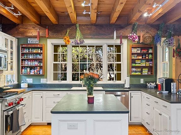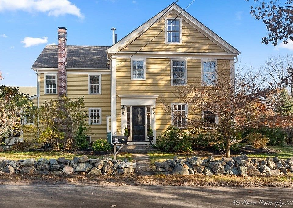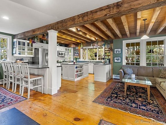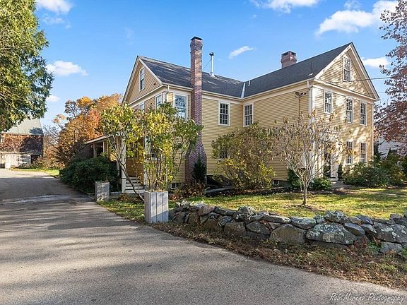 Stunning Greek Revival built in 1846 shortly before the Civil War, located on Historic High Road steps to Old Town Hill & Parker River. This gem is a blend of historic and modern elegance. Spacious eat in kitchen w/ Italian slate counters, Wolf stove, Sub Zero built in frig & freezer drawers, Morso wood stove to warm the "eat in lounge". Open dining room with wainscoting, additional entertaining space with screen porch all with wide pine floorboards. Relax in the library where you travel back in time with Indian shutters that recess into the library walls, beehive oven & back to back fireplaces. 2nd floor boasts spacious master suite, 3 bedrooms & 2 baths. Head up to the 3rd fl where modern greets you, builtin bed, media room 3/4 bath paneling of Burmese teak w aluminum spacer bars, radiant heat & hand dryer. Large barn with wood stove in 2nd floor workshop. All this on 2.4 acres of rolling lush lawn.This gem has been loved & meticulously maintained & improved by the current owners