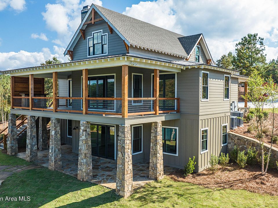 Lake living does not get any better than this one! The main level offers an open floor plan with a fireplace in the living room. The kitchen is the heart of the home with stunning countertops. The main level primary bedroom has a soaker tub, double vanity and fabulous shower. The main level also includes a spacious guest bedroom, built in bunkbeds, and laundry room. The loft offers space for an office or hang out spot. The terrace level offers a spacious family room with a beautiful island /bar area complete with an icemaker and under counter frig. There are 2 additional bedrooms, 2 baths, second laundry and storage on this level. The exterior porches offer plenty of relaxing and entertaining spaces. The oversized garage, beautiful landscaping, large dock with lift make this one awesome!