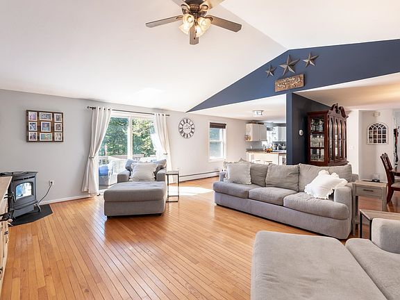 Welcome home to this beautifully cared-for 4-bedroom, 2-bath Colonial set on .72 private, wooded acres in Belmont, NH. Offering over 2,200 sq. ft. of comfortable living space, this home combines charm, functionality, and thoughtful updates throughout. The spacious great room features gleaming hardwood floors and plenty of natural light, opening seamlessly to the kitchen and dining area, perfect for everyday life and easy entertaining. A first-floor primary bedroom offers a full bath and laundry conveniently tucked in the closet. Upstairs, a bright open landing leads to three additional bedrooms and a large full bathroom. The two-car garage provides direct entry and additional storage space below. Outside, enjoy quiet evenings by the fire pit surrounded by trees and nature or relax on the sunny deck with a good book. Ideally located near Lake Winnisquam, Lake Winnipesaukee, Gunstock Mountain, and local schools, shopping, and dining—this home offers comfort, convenience, and the best of Lakes Region living. Showings begin at the Open House Saturday 10/11 10am - 12pm.