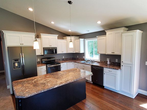 the wonderful Maple Ridge neighborhood. Nice getaway to peace & serenity on your.78acre parcel. Walk in to your large tiled foyer and check out your 4 bedroom 3 bath home. Highlights are Bamboo floors, Vaulted knockdown ceilings, Custom staggered kitchen cabinetry, Slate GE appliances, center island and a lazy Susan so you don't lose your corner cabinet space. Right off the kitchen, enjoy grilling and hanging out on the maintenance free deck overlooking nature and wildlife in your big backyard. There's a fun basketball court off the back side yard, a firepit for those cooler nights and a shed for extra storage. Back inside the house there's a large primary suite and attached private bath with some soft close cabinets. You have French paneled doors to all of the bedroom closets. Tiled bathroom floors. Lots of room for entertaining in the LL family room or just relaxing.