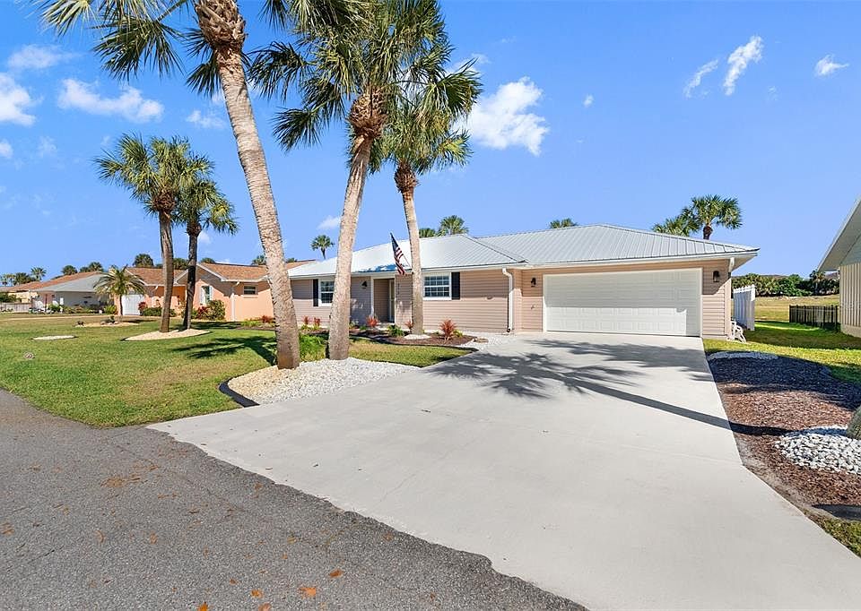 ASSUMABLE 2.65% INTEREST RATE MORTGAGE FOR QUALIFIED BUYERS!! Experience luxurious living in this updated two-bedroom, two-bath POOL HOME haven, located beachside with-in walking distance to the beach and a short ride or drive to all the restaurants and shops Flagler Beach has to offer. Revel in the beauty of all-tile floors, granite countertops, and a sleek metal roof. Enjoy the refreshing pool overlooking the golf course, complemented by stunning sunsets. The freshly painted exterior, driveway, walkway, and pool deck add to the curb appeal. Swim in style with the new pool pump and resurfaced pool. Delight in privacy with new fencing in the backyard, surrounded by meticulously landscaped grounds. The kitchen boasts top-end Frigidaire Gallery appliances, soft-close cabinetry, and custom tile. Retreat to renovated interiors featuring refinished ceilings, walk-in closets, and custom blinds. This residence combines elegance and functionality, making it an ideal place to call home. 30 minutes to historic St Augustine, 20 minutes to Daytona Beach, and a little over an hour to Orlando and all the theme parks! Call agent today for your own private showing and start living the Florida beach life you've always dreamed of!