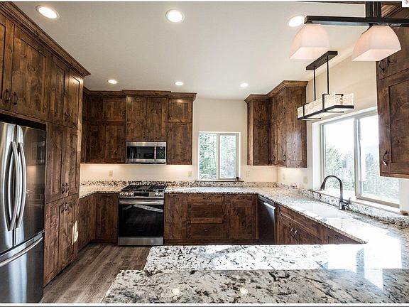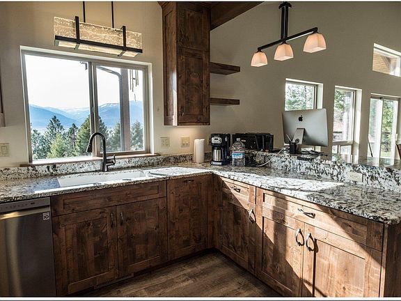 Paradise on the Bluff. Custom and Quality throughout this 3 bdrm 2 bath home with spacious 2 car garage on 2.92 private and wooded acres at the edge of town. 1960 sq ft home overlooks the city, mountains, and valley. Custom elk ironwork gate greets you at the property entrance. Driveway leads to your private hilltop home. Enormous timber accent covered patio to take in the views summer and winter. Rustic and Elegant kitchen features ceiling height custom alder cabinets accented with rough edge granite counters and peninsula. Open concept living space is enhanced with large southern facing windows and cathedral ceilings with timber accents. Corner stone fireplace creates a cozy gathering spot. Primary bedroom suite features a masterfully designed walk in shower, dual closets, granite vanity and toilet closet. New lawn and sprinkler system are established for ease of maintenance. Superb landscaping along the hillside. Majestic Views and Spectacular Home in an Excellent Location. Gated driveway. No drive bys please. Viewings by appointment only.