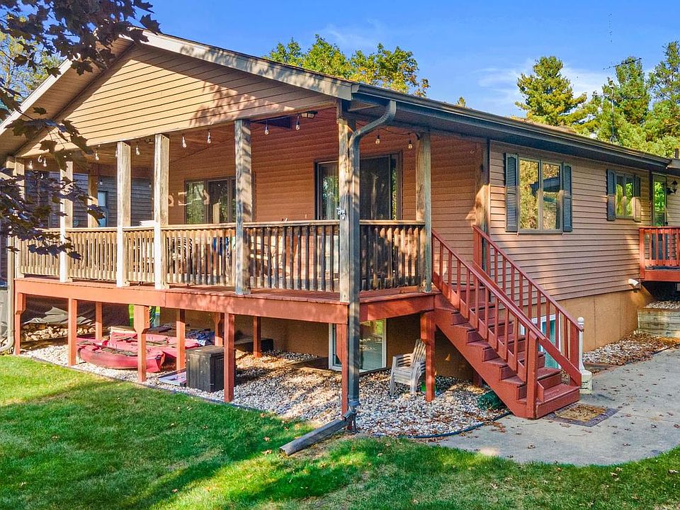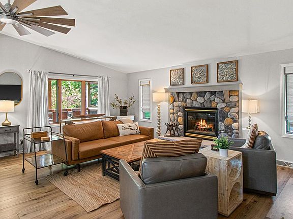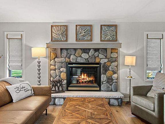 Lake Camelot Waterfront! Is there anything more relaxing than watching the boats slip by on the channel? This gracious home is stunningly updated, inviting guests to linger on the covered porch or by the warm fire. Step into an open layout with cathedral ceilings, plank floors, windows on the water, and a calming, modern aesthetic. Features include a bright, convenient kitchen with tile backsplash, solid surface tops, breakfast bar; lakeside dining, central living area with fieldstone fireplace; main floor laundry; full bath; spacious primary w/ensuite & walk-in closet; and roomy second bedroom. Downstairs find two more lovely bedrooms, hall nook, half bath, and large storage room with access to garage. Let this one become your full time home, or favorite weekend escape! Discover Rome!