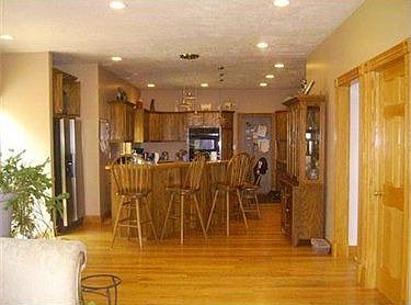 stone custom built home located in Center Township on 7.6 acres. One of a kind, quality built throughout, custom made red oak kitchen cabinets, oak and cherry crown molding in dining room and living room, cathedral ceilings, 2 story entry, white granite kitchen countertops, recessed lighting throughout, 2 wood fireplaces, 2nd living space in basement, office, etc. carpet floors, drywall.