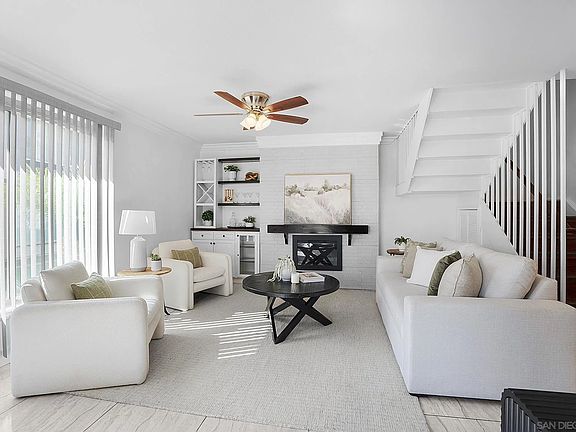 Welcome to this immaculate end unit-corner townhome at 273 Rancho Ct #C, featuring 3 Bedrooms and 1.5 Bathrooms in the sought-after Rancho Rios complex of Chula Vista. This recently and extensively upgraded unit offers approximately 1,274 square feet of comfortable living across two stories, showcasing beautiful tile flooring, fireplace, modern ceiling downstairs, perfectly complemented by brand-new luxury vinyl flooring in all upstairs bedrooms. The kitchen offers an open floor concept, ideal for entertaining, and comes complete with modern stainless steel appliances. Enjoy exceptional convenience with a large, private enclosed patio on the ground level, which includes a dedicated laundry room with washer and dryer hookups. The relaxing master bedroom upstairs features a desirable large balcony, and the property comes complete with two parking spaces, including one carport. Owners will also benefit from fantastic community amenities, including a sparkling pool and clubhouse. Located ideally for quick access to the I-805 freeway, major shopping, and dining, this move-in-ready home represents exceptional value and is perfectly suited for first-time buyers or those utilizing VA financing! Seller is entertaining offer between $549,999.00- $575,000.00