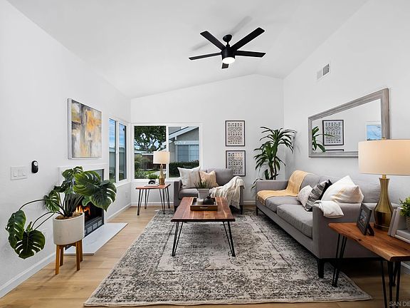 Corner unit 2 bedroom 2 bathroom that comes with a detached 1 car garage. An open-concept kitchen and living room with a centralized fireplace that adds an extra touch of coziness. The dining room connects to a private patio providing the option to utilize the indoor/outdoor space. A convenient extra storage space/shed on the patio. The primary bedroom features its own private patio. Some of the community amenities are just steps away where you can indulge in the pool, or have a friendly match or workout at the basketball/tennis court. When you are not at home you can enjoy the close proximity to golf courses, shopping centers, and San Luis Rey River trail that leads to Oceanside Harbor or to Guajome Lake.