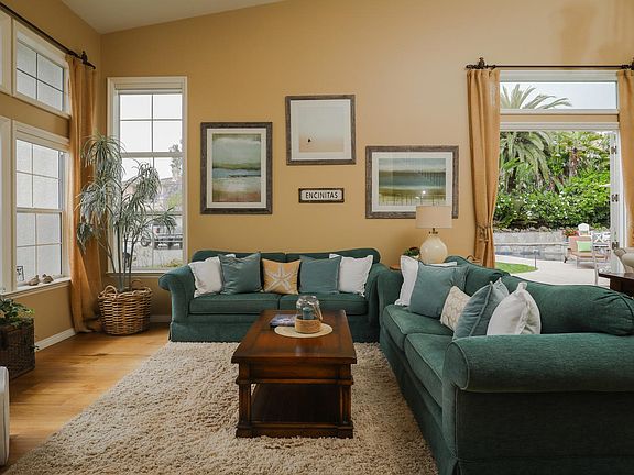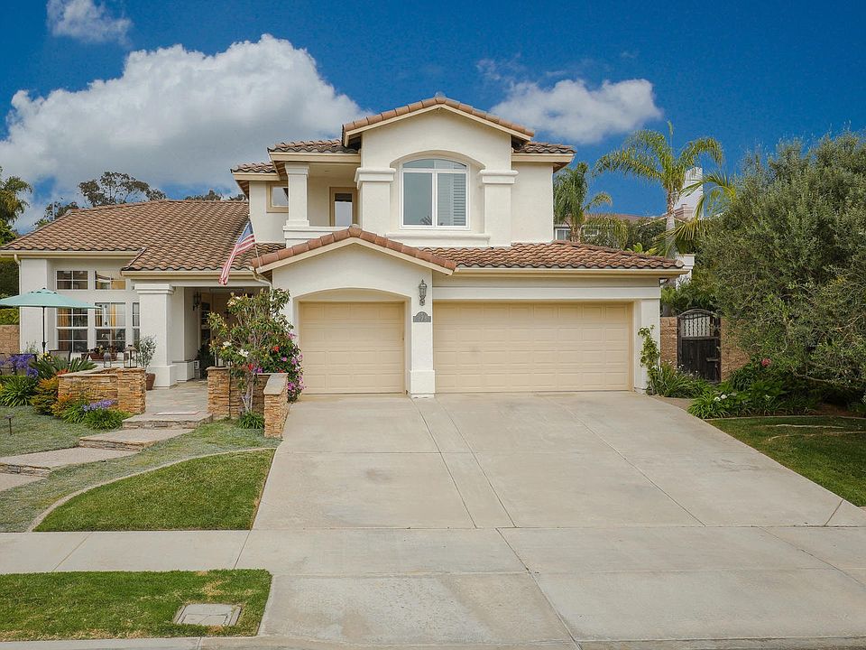 Fantastic floor plan remodeled in 2011! Master suite & addtl bdrm on entry level with 2 bdrms & den (optional 5th bdrm) upstairs. High ceilings, light & bright, situated on .31 acres at the end of cul de sac. Sparkling pool & spa - whole house solar owned - no electric bills! Extensive use of stone in entry & yard with raised garden beds and patios! Great property for entertaining located just minutes from the freeway & walking distance to the YMCA, shopping & restaurants. NO fees & peak at ocean!