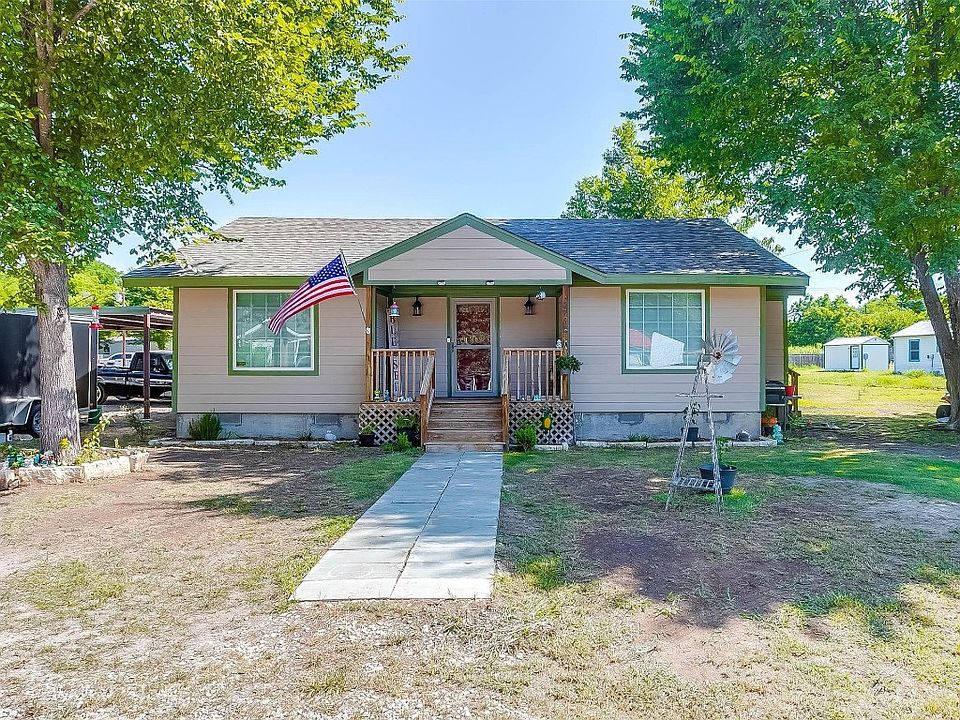 Great location between Weatherford and Azle. Quiet small subdivision. Ideal starter home, income property or empty nester downsizing. This charming 3 bedroom 2 bath home is on a large corner lot. New roof 7-1-2023. Storage shed. Carport. Large shade trees. Open living and dining area. Split bedrooms.