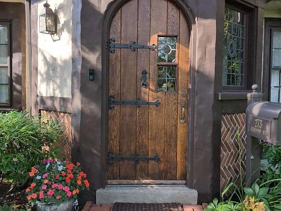 Elegant English Tudor style home on a beautiful, professionally landscaped property. Homes in this cluster of coveted properties rarely come on the market as owners hold onto them for decades. Walk a half block to commuter rail for a short ride to downtown Philadelphia or to many stops on the Main Line, east and west. Walking distance to a farmer's market, restaurants, and downtown Wayne, and close to many shops, libraries, eateries, parks, trails, nightlife, and grocers. Close access to many major highways. Top-rated Tredyffrin-Easttown schools and very low taxes. The stunning arched front door looks like it belongs on an English castle. A handsome, custom electronic garage door enables convenient entry into the house from inside the garage. The garage has a 240v outlet for EV charging and power tools. A spacious deck provides easy access from the kitchen for relaxation with privacy or for entertaining. Two staircases lead from the deck to the back lawn and to a large brick patio for barbecuing where there's plenty of space for a firepit. Paver walkways provide access to the deck and patio from the driveway. Security lighting along the entire perimeter of the house lights the way with motion detection as one steps from each zone into the next. Security cameras allow for photo capture as well. The eat-in kitchen has radiant heat in the floor and stainless appliances including an ultra-quiet Miele dishwasher, a new stainless 36-inch Wolf induction range and a new Bosch refrigerator. Back stairs from the kitchen meet the main staircase for extra privacy. A full-size dining room allows for easy entertaining. A wood inlay star medallion in the floor transitions from a half bathroom, down several oak stairs to a tiled laundry room. Here are a new top-rated washer and dryer with storage drawer pedestals as well as a utility sink. This laundry room has a door to the patio and also leads inside to the full-size unfinished basement. Off the living room is an enclosed porch/sunroom with large windows and room to accommodate an office setup. On the second floor, the master bedroom with ensuite bathroom adjoins a second bedroom which can be used as a nursery, sitting room or office. Off the hall is another full bathroom as well as a bedroom with an adjoining bonus room. On the third floor is an ensuite bedroom/bathroom with a clawfoot tub. An additional bonus room has numerous possibilities. Stained glass windows in the front door as well as in the foyer, cast colors onto the walls in the sunlight. The house features significant natural lighting from the many windows which include singular styles characteristic of English Tudors. Professional perennial landscaping has something in bloom from late winter until late fall, providing significant privacy in the backyard and serene beauty all around the property. This is a very special property, boasting exceptional aesthetic desirability as well as convenient location.