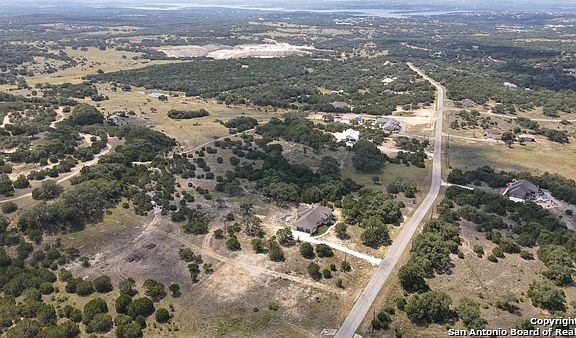 This unique lot offers the destination for your new dream home. Three acres with a rare mesa at back of building site. Prestigious Mystic Shores will allow you to enjoy the cool gentle breezes while watching the magnificent sunsets and sunrises from high atop the mesa ridge. Large oaks on the mesa set the scene for your back views with soaring Hill Country views from the front. Level building site, above ground utilities, 2000 sqft min. with no time limit to build. Neighborhood offers so many outdoor amenities features such as waterfront park and boat docking