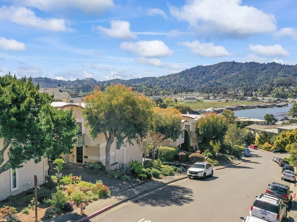This charming end unit condo boasts a beautifully designed main level, featuring a modern kitchen with stainless steel appliances, a convenient half bath, and a spacious living room with wood floors. Step out onto the south facing deck, perfect for basking in the sun and taking in scenic views of Mt. Tam. Upstairs, you'll discover two bedrooms, each with its own private deck, high ceilings, a spacious skylight above the hallway, brand new carpeting, and an updated full bathroom. Additional perks include covered one car parking and a large storage unit. Centrally located near the Bon Air shopping center and top-rated schools, this condo is perfect for commuters, with easy access to the 101 and Larkspur Ferry Terminal. Plus, you're just minutes away from numerous biking and hiking trails, combining the best of convenience and outdoor recreation. Located in a quiet, small complex with two shared laundry rooms, this condo does offer a hallway closet that can accommodate a stackable washer and dryer as other units have previously installed.