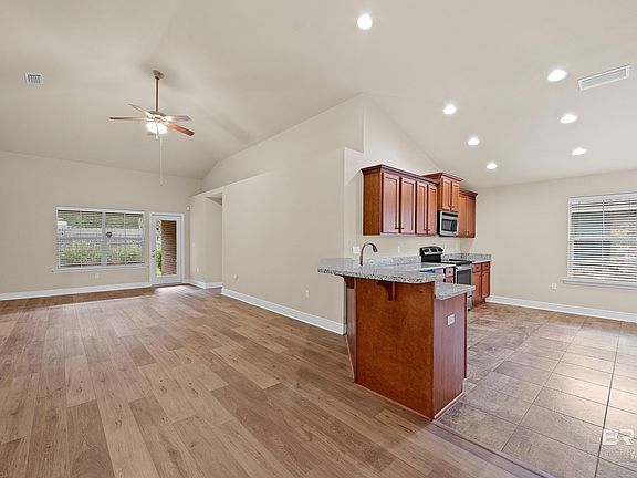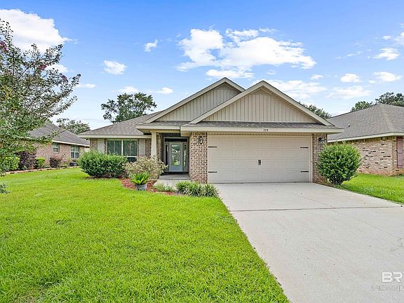 Welcome to 273 Wyatt Ct, located in the Southampton neighborhood of Foley. Less than two miles from downtown, this home offers quick access to the Foley Sports Complex, local parks, schools, restaurants, museums, Tanger Outlets, and OWA. Built by Adams Homes, this 4-bedroom, 2-bath brick home features a practical layout with vaulted ceiling and spacious living areas. The interior has been fully refreshed with new flooring, new baseboards, and fresh paint throughout. The kitchen includes stainless steel appliances, granite countertops, a pantry, cozy breakfast area, and a step-up bar with seating, while the formal dining room provides additional space for gatherings. The primary suite includes a tray ceiling, walk-in closet, and ensuite bathroom with double vanity, garden tub/shower combo, linen closet, and tile flooring. Three additional bedrooms, including one with double doors that can serve as a home office or playroom, share a full guest bathroom. Step outside to the covered back patio with views of the landscaped, fully fenced yard—the perfect place for quiet mornings with coffee or relaxing evenings outdoors. A dedicated laundry room and attached double garage complete this home. This property combines comfort, function, and a great location! Buyer to verify all information during due diligence.