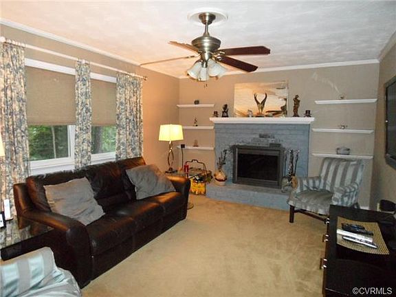 Wonderful Brick ranch on over a 1/2 acre close to Chippingham and Powhite. Formal living room with wood floors,crown molding and large picture window opens to the formal dining room that continues the wood floors. Dining room also has chairrail and opens to the large Florida Room that has wonderful views of the back wooded area. Florida room has ceramic tile floor, ceiling fan with light and is heated and cooled. Family room is cozy with wood burning fireplace that has wood mantle and brick surrounds and hearth, ceiling fan with light and carpet. Kitchen has ceramic tile floor, granite counter tops, upgraded cabinets, ceiling fan and 3 recessed lights. Master bedroom has carpet and attached bath with marble floor, pedestal sink and whirlpool tub with marble surrounds. 2 other bedrooms have laminate floors. Hall bath has ceramic tile floor, pedestal sink and tub has ceramic tile surrounds. All but 2 windows are new vinyl replacement windows, security light and shed complete the perfect 1 level living home.