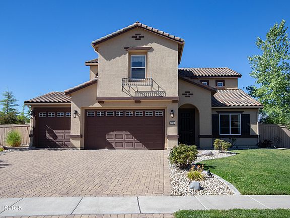 Welcome to this exceptional gated community with security nestled in Saddle Ridge —where luxury, lifestyle, and location converge. This thoughtfully designed home boasts a flowing open floor plan that seamlessly connects elegant living spaces, making it ideal for both daily living and entertaining. From the moment you step inside, you'll be impressed by the beautiful hardwood flooring that adds warmth and sophistication throughout. Natural light pours through expansive windows, highlighting the home's clean lines and refined finishes. At the heart of the home is a your dream kitchen, centered around a large, stunning island that serves as both a functional workspace and a natural gathering spot. Perfect for casual breakfasts, culinary creations, or evening entertaining, this expansive island is complemented by stainless steel appliances, abundant cabinetry, and generous counter space. Whether you're preparing a weekday meal or hosting a dinner party, this kitchen is designed to impress. Retreat to the oversized primary suite—a peaceful sanctuary featuring a private balcony, spa-inspired bathroom with dual vanities, a tile-surround walk-in shower, a luxurious garden tub, and a spacious walk-in closet. Enjoy seamless indoor-outdoor living with a fully landscaped backyard featuring a custom paver patio, tranquil water feature, gas-plumbed fireplace, and BBQ hookups—perfect for relaxing or entertaining under the stars. As a resident of Saddle Ridge, you'll enjoy exclusive access to resort-style amenities including a sparkling pool, clubhouse, tennis and pickleball courts, playgrounds, scenic walking trails, and a manned security gate for added peace of mind. All of this is just minutes from top-rated schools, world-class hiking and biking trails, Mt. Rose Ski Resort, and the breathtaking beauty of Lake Tahoe. This home truly offers the best of both elegance and an active lifestyle. Don't miss your chance to experience it for yourself—schedule your private showing today.