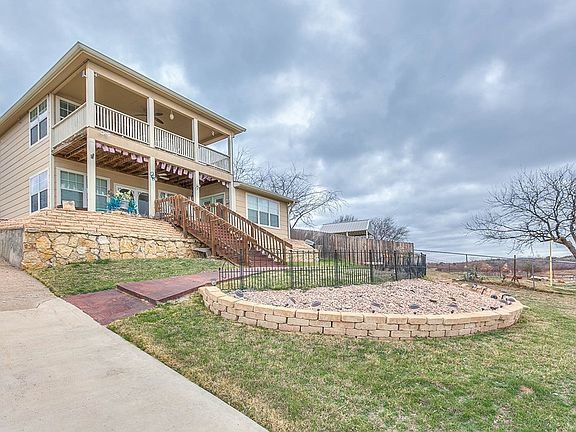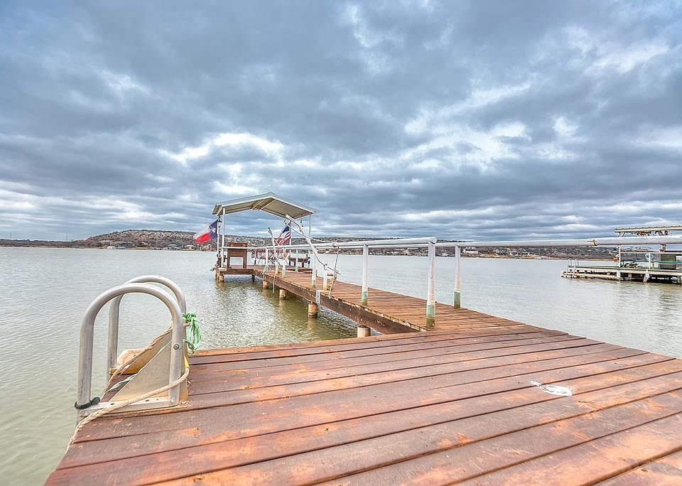This main body lake house with 4 bedrooms and 3 bathrooms is on an OWNED lot! Take full advantage of everything the lake has to offer with RV/boat parking, the boat lift, pwc lifts, fishing pier, and a party dock featuring an outdoor kitchen, storage room, and insulated metal roof for a cool summer hangout spot right on the water. This part of the lake has exceptional views and less boat traffic near the shorelines for a more peaceful experience. Updated with cabinetry, countertops, flooring, and added square footage in 09. The secluded master suite upstairs features a large private balcony with expansive views of Lake Nasworthy, or you may choose the master suite downstairs that includes an extra large closet with laundry connections, a spacious bathroom with double sinks, tub, separate shower, and french doors leading to the patio overlooking the landscaped backyard, fire pit, and the Northwest area of Nasworthy. Everything you need for an endless summer is here waiting for you!
