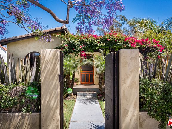 You'll love the warmth and lushly landscaped indoor/outdoor living of this completely remodeled two bedroom, two bath Reynier Park Spanish bungalow. Nestled on a large corner lot and surrounded by bougainvillea, jacaranda trees, palms and drought tolerant grasses, this charming home boasts gleaming hardwood floors, a wood burning fireplace, and light-filled bedrooms. In the totally enclosed back yard, you'll find a pergola with built in seating, a large farmer's dining table and benches, rosemary bushes, a large guava tree, and even a hot tub tucked in the corner. Your own jungle oasis 5 minutes from the 10. The detached 2-car garage completes the package.