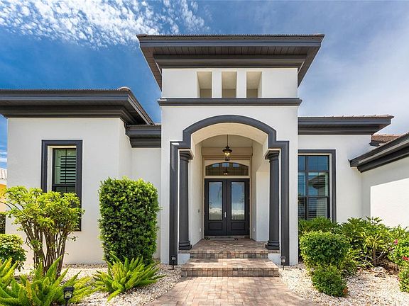 Don’t miss your opportunity to own this custom built ARTHUR RUTENBERG home located in the highly desirable community of Punta Gorda Isles. This home checks all the boxes! Located on a sailboat canal (no bridges) less than 10 min to Charlotte Harbor and the Gulf makes this home a boater’s dream. Upon arrival you will be immediately impressed with the curb appeal of this recently painted (inside and out) 4 bedroom, 2.5 bath home. The home features an open floor plan with high tray ceilings and an abundance of natural daylight giving the home an even more open and airy feeling. As you would expect in a Rutenberg home, the high quality fit and finish is evident throughout the home from the porcelain tile floors to crown molding to plantation shutters every detail is done to perfection. The kitchen boasts of stone countertops, SS appliances, solid wood cabinets, a large island/breakfast bar, and tons of storage. Here too, you will find a generous walk-in pantry. Adjacent to the kitchen is a dinette with a large bay window for casual dining. The expansive primary suite with its large walk-in closet is a sight to behold ….bright and airy with direct access to the pool/lanai area. The adjacent primary bath has a tub, separate glass enclosed walk-in shower, and dual/split vanities. The three guest bedrooms and second bath are equally well appointed. On the lanai you will find a large heated, saltwater pool, a paver deck, and an outdoor kitchen…perfect for entertaining family and friends. Beyond the lanai is the fenced in back yard, an 80’ city maintained seawall, a 60’ dock, and a 9,000# boat lift. Additional features include: full hurricane protection with both impact resistant doors & window and accordion shutters, an oversized 3 car garage, circular driveway, and a 22kw propane generator with two 120 gallon tanks. All specifications and dimensions are deemed to be accurate and should be confirmed to the buyer's satisfaction.TVs, TV Brackets, Sonos sound system, fixed or hanging/secured wall decor, and underwater lights do not convey. Furniture and Bennington Pontoon boat available under separate contracts. All dimensions and specifications are deemed to be accurate and should be confirmed to the buyer or buyer's agent satisfaction.