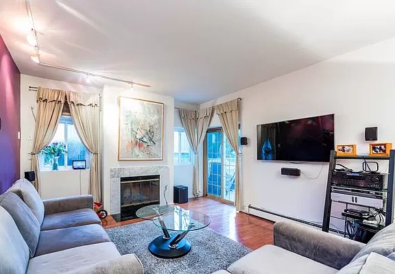 Beautiful waterfront condo - 2 full bedrooms and 2 baths, with a huge private terrace with waterview surrounded by green grass. Gated community with both a Marina for your boat, and a private sandy beach overlooking the Long Island Sound. Upon entering, you are welcomed by your stylish foyer area, with both a coat closet and a huge storage closet under the stairs. The kitchen has enough space for a small breakfast area, and a walk-in pantry with abundant space right across. The dining area comfortably fits a table for 8. The living room is accentuated by a woodburning fireplace, and you exit through custom sliding doors to your own private patio. There is also a stackable washer and dryer inside the apartment. The master bedroom has its own door to the patio, and a luxurious walk in closet as well as an en suite master bath. Gleaming hardwood floors have been added throughout. This condo also comes with its own assigned parking space. Easy commute via express bus to the city, and soon there will be a ferry to Manhattan. Enjoy the famous restaurants and a stroll along East Tremont Avenue. Amazing Waterfront Oasis!