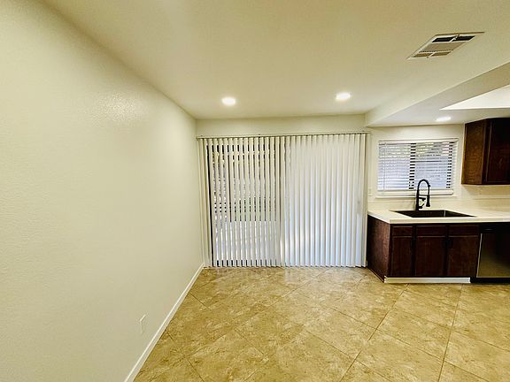 New blindsOpen kitchenLarge roomsTile flooringFormal dining roomStainless steel appliancesRecessed lights