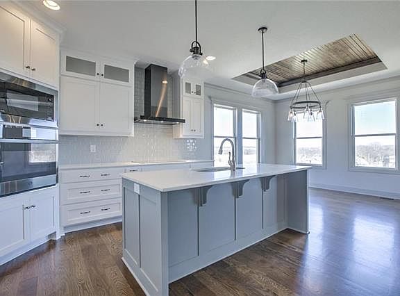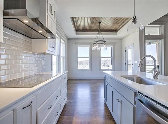 Impressive Reverse 1.5 Story on BIG Green Space Lot backing to Mature Trees and Beautiful Walking Trail! Quality Builder, Terrific, Friendly Community. Home offers many upgrades typically found in more expensive homes, all at an affordable price! Imagine morning coffee or grilling out overlooking nature from your deck. Next to newly renovated Lake Olathe, with Swim Beach, Marina, & more. Pictures of PREVIOUS Built Home. Estimated Completion late July 2022. DONT MISS TORNADO SHELTER ROOM.