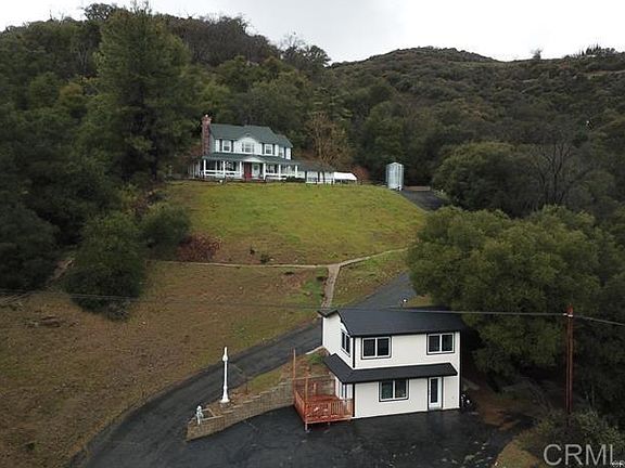 Beautiful farmhouse style home in the rolling hills of Santa Ysabel. Sitting on the mountainside overlooking the vast valley below with views of Lake Henshaw and the majestic mountain ranges, this home sure feels like you are on a peaceful getaway retreat. Take in the tranquility and stillness of the countryside while relaxing on the wraparound porch. Have your morning coffee on the porch swing while watching the hawks soar ahead, and at night catch the most beautiful star filled night skies. Excellent location. 15 minutes to the historic town of Julian. Many new upgrades throughout the home. Detached 2 story building on lot features new engineered wood floors, new roof, new exterior and interior painting, new windows and can easily be converted into an ADU.