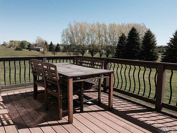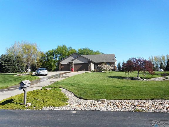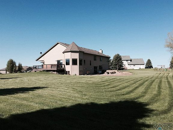 Peaceful acreage located close to Lake Alvin! This sprawling home offers 4 bedrooms, 3.5 baths, an impressive kitchen and dining room with great view, and an amazing MAN CAVE complete with a FULL BAR, entertaining and relaxation areas. There is ample space to spread out in your main floor living room, or family room and multipurpose room in the walk out lower level. This home also offers 3 fireplaces, 3 bedrooms and 2 baths are on the same level, and a large entry off the garage that hosts a walk in closet and half bath! Quality touches include wood floors, 6 panel doors, and a very spacious and comfortable floor plan. Large master suite with full bath, walk in closet plus another double closet. Sip lemonade on your covered front porch or head over to the lake across the street to enjoy some fishing or canoeing! Huge 3 car garage that is finished and heated plus extra parking pad! Sioux Falls is just minutes away and roads are all paved up to the home! Such a retreat!