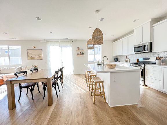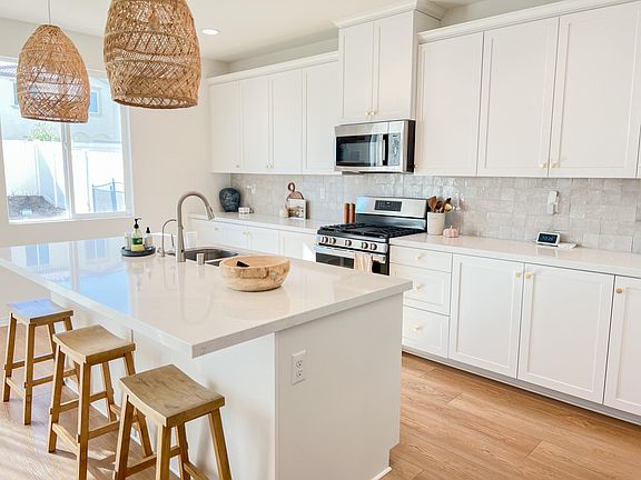 Beautiful 4 bedroom, 3 bath (plus a loft) newly built home in the highly sought after Camden Place development within the Menifee Town Center community. The home was built with nearly every upgrade from the builder as well as completely custom flooring and a beautiful Zelliage tile back splash, custom epoxy garage floors with large workbench and storage, and large artificial turf backyard. **Just installed nice new wood blinds on nearly all windows (not pictured)**. However, one of the greatest features is the home's location. Within about a 5 minute walk (or less) are a multitude of restaurants, grocery stores, and shops including: Starbucks, Dave's Hot Chicken, Luna Grill, Urbane Cafe, Sprouts, Olive Garden, Wendy's, Chronic Tacos, the Habit, Krispy Kreme, Rubios, and much more. The home is also right around the corner from major stores like Target, Lowes, Best Buy, Home Goods, and more. The first floor includes one bedroom with a walk in closet, a full bathroom with tub and shower, the kitchen with a large walk in pantry, and an open living space. The floors are a natural wide plank vinyl flooring that was not a developer option (installed separately by the owners). The kitchen features gorgeous white and gray quartz counter tops, modern stainless steel appliances, and custom Moroccan Zelliage tile backsplash. The up stairs includes a large loft, the primary suite with attached bath and walk in closet, two bedrooms, another full bathroom, and the laundry room. The entire floor plan is very open and receives TONS of natural light during the day. At night, the home is well lit with the upgraded LED can lights in every room. The backyard is large and landscaped with artificial turf and newly planted greenery. The 2 car garage has custom epoxy floors, a side door to the backyard/trash cans, and built in storage cabinets with a workbench. The home also includes: Ring video doorbell and security system, app controlled thermostat, and has built in solar panels which are owned by the home owners which helps cut energy costs. The home is in a very quiet and safe neighborhood with excellent neighbors. The community has numerous parks within walking distance and renters will have access to the community pool/jacuzzi and clubhouse. Furnishings in photos are for show only-home will be unfurnished. The security deposit is equal to one month's rent. Approval is at Owner's discretion and is subject to good credit and verified income. The home will be available to rent starting September 28, 2024. Current tenants are still living there so viewing will need to be coordinated. Owner pays for HOA fees which gives renter access to the community pool/jacuzzi and nearby parks. Renter is responsible for all utilities, including: water, gas, electric, trash collection, and internet, as well as pest control if desired. No pets. No smoking/vaping. No more than 3 unrelated adult occupants allowed. No more than 3 cars allowed. Renter is responsible for maintenance of front and backyard and to abide by all HOA rules and regulations. Lease is for one year term with the option to extend. Owner is open to longer lease term at renter's request.