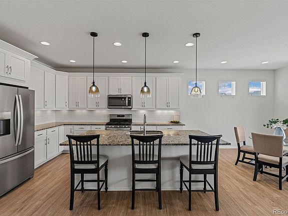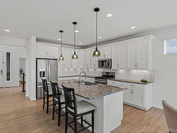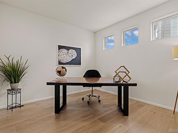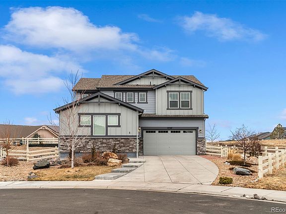 Privately situated on a large lot in a cul de sac that backs and sides to walking trails and greenspace in the highly coveted Southshore neighborhood in SE Aurora, this 4 bedroom, 3 bath home shows and feels like a brand new home. The impressive two story foyer is just the introduction to the high quality design finishes that grace this entire home. Guided throughout the main floor by luxury vinyl plank flooring, this home features a main floor office with double French doors, open concept living room with gas log fireplace and large picture windows overlooking the private lot. The kitchen is the perfect blend of warmth and modern luxury with white cabinets, granite countertops, large center island with soft close cabinets and gas range. The sliding glass door opens to a large covered patio that overlooks the greenspace and trails that extend beyond the property as well as three apple trees in the professionally landscaped backyard. New oak hardwood floors guide you upstairs for an additional four bedrooms and two bathrooms, including the Primary bedroom with ensuite bath and laundry room featuring a utility sink and cabinets. The Primary Bedroom is the perfect private retreat with a five piece ensuite bath featuring dual sinks with quartz countertops, new shower door and large soaking tub. Three additional bedrooms feature oak wood floors and private views overlooking greenspace and trails and share a secondary bath with dual sinks, quartz countertops and tub/shower combo. The unfinished basement features rough in plumbing for future bathroom, wet bar or both! Located within walking distance to elementary, middle and high schools in the Cherry Creek School District and perfectly situated in walking distance to the Aurora Reservoir for swimming, fishing, paddle boarding and miles of trails. Southshore features two community clubhouses, multiple pools, two private gyms for residents, private dog park, countless parks/playgrounds and a private fishing lake.
