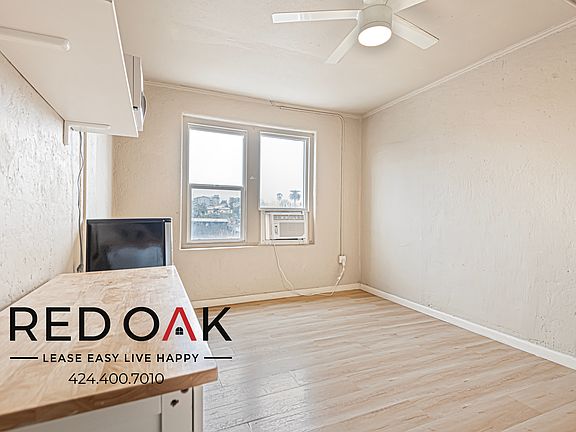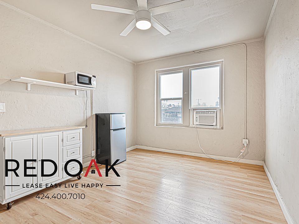 Delightful Bachelor with Lots of Natural Sunlight, Beautiful Hardwood Floors, Appliances, and All Utilities Included ~ In the Heart of L.A.! Home Highlights: Timeless Charm: Nestled in a beautifully restored historic building, this unit features sun-drenched interiors and classic architectural details. Bright & Inviting: Large windows flood the space with natural light, highlighting the elegant hardwood floors and warm ambiance. Year-Round Comfort: Stay cool with an energy-efficient window-mounted A/C unit and a sleek ceiling fan. Quaint Kitchenette: Enjoy hardwood cabinets with a butcher-block style countertop, stainless stee mini-fridge, and microwave, along with an extra shelf for storage. Serene Bathroom: Enjoy a well-lit mirror, hardwood vanity cabinet, and a soaking tub with an attached shower. Stress-Free Living: All utilities are included in your rent for added convenience. Cat-Friendly Retreat: Your feline companion is welcome here. On-Site Management: A dedicated team is available to assist with your needs efficiently. Prime LA Location: Enjoy easy access to the 101 freeway and iconic destinations like LACMA, The Hollywood Walk of Fame, The Grove, and Farmers Market. Take a stroll through Griffith Park or explore top dining spots like Jon & Vinny's and Canter's Deli. This one won't be on the market very long! Available for an immediate move-in. LEASE TERMS: 1 Year Lease Pictures and descriptions are of EXACT unit Square Footage is approximate. Street Parking Only. Showings may not be 1-on-1. All information must be validated on Red Oaks Website since 3rd party websites can feed incorrect information.