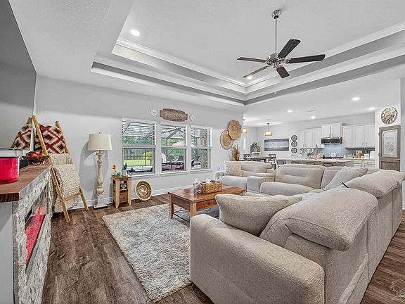 Welcome to this beautifully updated 4-bedroom, 2.5-bath home where no detail has been overlooked! Inside, you’ll love the stylish kitchen featuring quartz countertops, a brand-new farmhouse sink, stainless steel appliances—including a gas stove and new refrigerator—and sleek LVP flooring throughout the bedrooms (no carpet anywhere!). There is an electric fireplace in the family room that adds style and functionality. The home’s upgrades continue with a meticulously finished garage, featuring a side-mounted SILENT opener and durable Ninja Coating flooring with a lifetime warranty, which extends to the pool deck for added style and longevity. Step outside to your private oasis—a brand-new screened-in saltwater pool with a gas heater, completed in 2025—perfect for year-round enjoyment. The backyard also offers covered parking behind the fence for your boat or truck, plus a newly poured concrete slab ideal for a smoker, BBQ setup, or additional entertaining space. This move-in-ready home combines comfort, quality, and modern updates both inside and out—don’t miss your chance to own this exceptional property!