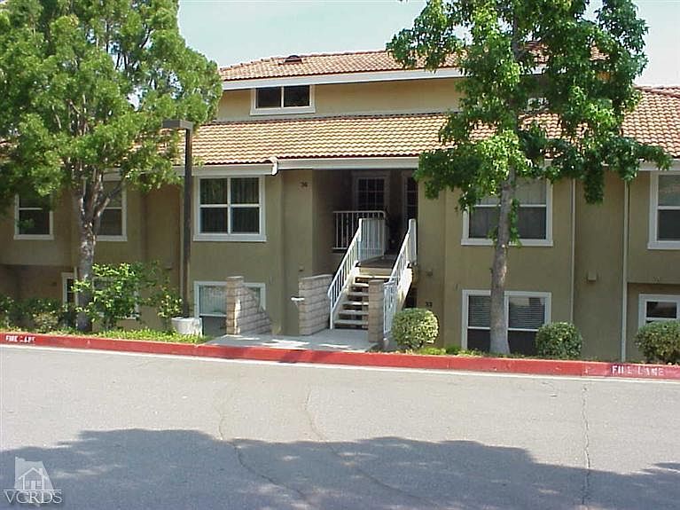 Standard Sale. Super sharp downstairs unit, fresh paint, tiger wood hardwood flooring in living room, ceramic tile and carpet, upgraded appliances, fireplace in the living room, washer/dryer + refrigerator included, balcony off master with great views of Simi Valley gated community with community pool + spa.