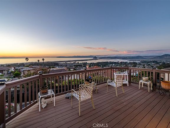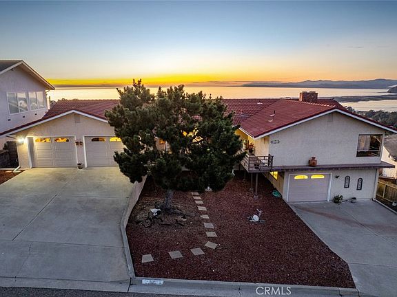 The home boasts 180-degree views of the back bay, Morro Rock, and the Pacific Ocean. Its dynamic split-level design provides a multitude of options, including multi-generational living, private guest quarters, or a rental option with a dedicated two-car garage. The expansive lot also offers endless possibilities for customization and enjoyment.