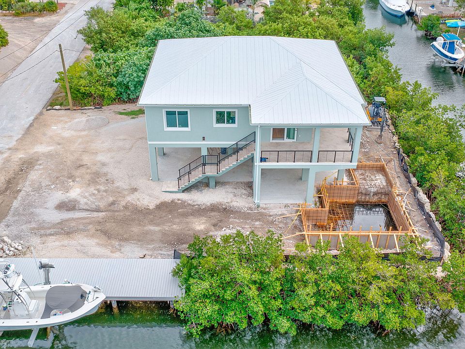 Brand new concrete waterfront pool home on a corner canal lot with an exceptional 204' of water frontage, including the main canal, and just moments from open ocean access! This stunning home is built to withstand 180 mph winds, featuring impact-rated doors and windows, a metal roof, and solid concrete construction.Enjoy Florida Keys boating with a 40' composite dock, 15,000 lb boat lift, and direct ocean access. The interior offers a bright, open Great Room design with porcelain plank floors, a gourmet kitchen with quartz countertops and large center island, and a separate laundry room.Wrap-around covered porch overlooks the brand new waterfront pool and serene canal views. This tropical escape offers a total of 3 bedrooms, 2 baths, and 1,666 sq ft of elevated coastal living. Located in the charming community of Ramrod Key, known for laid-back island vibes, waterfront homes, and two local restaurants with live music. Just 30 minutes to Key West and minutes from shopping and dining. Pool, landscaping and interior finishes will be completed soon -- check back for updated photos as construction nears completion!