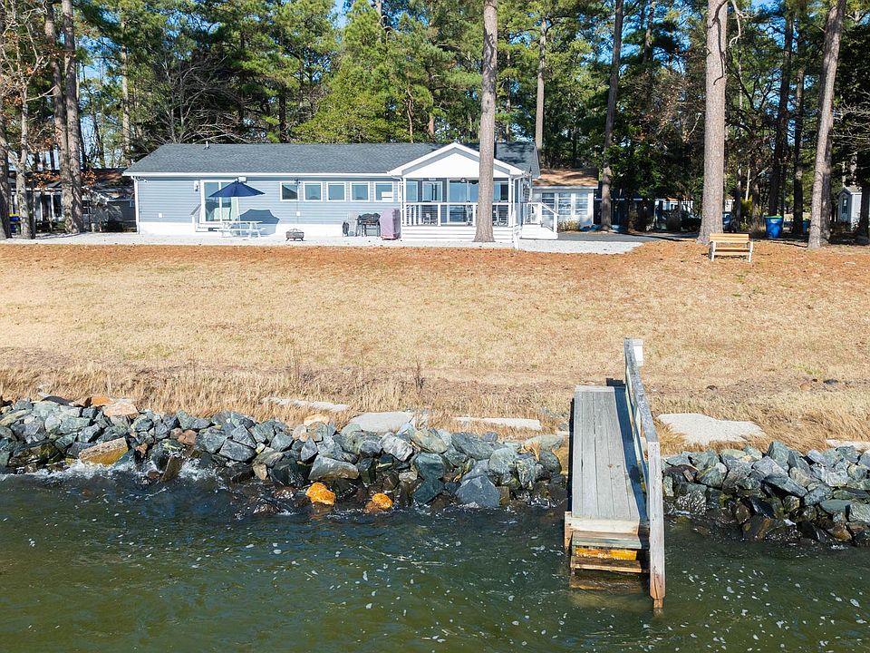 Stunning! This home and the views are equally spectacular. This bay front home has been lovingly transformed into a beach oasis. You can enjoy either the sunrise to the east or the sunset to the west with an unobstructed view of the Indian River Bay. The kitchen has been well thought out and offers ample room for guests and socializing while the chef can prep meals all while everyone is enjoying the bay view. This eye catching kitchen has the must haves for the kitchen enthusiast. Cabinets and drawers are soft close, stainless appliances, slide in range and the fish scale backsplash compliment the quartz countertops and there is even a beverage fridge for convenience. The living room is spacious, has a vaulted ceiling and ample windows to enjoy the bay view. On to the Primary bedroom. This bedroom offers amazing bay views. The ensuite is tastefully done with tile shower, vanity with quartz countertops and also offers ample closet space with organizers. For the work form home or work from play worker there is a touchdown space for you off the kitchen and Livingroom area. The 2nd and 3rd bedrooms are tucked away from the primary bedroom offering privacy for all. This home comes furnished with a few exceptions of personal items and knickknacks. This home is in the community of White house Beach, a bay front community offering resort living and several marinas with seasonal dock rentals. Owners boat dock may be available for the new owner. This home is a must see.