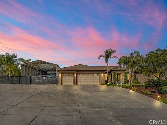 Nestled on a sprawling half-acre plot within Hemet's most sought-after and upscale locales, close to the Ramona Bowl, stands this exquisite custom-built residence, a true embodiment of elegance and sophistication. As you step through the ornate stained-glass entryway, you're welcomed into a pristine living space spanning 3,493 square feet, meticulously designed and crafted. This home boasts a trio of bedrooms and three full bathrooms, complemented by a bespoke office space, adorned with rich walnut wood and sleek laminate flooring.