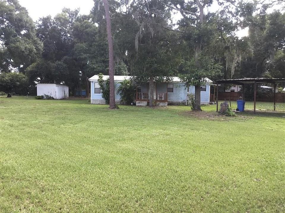 Down a private country lane, sitting among Oaks & Pines you'll find this 3 bedrm 2 bath double wide mobile home on 1.45 acres. Huge great room with cathedral ceiling & fireplace. Kitchen & Dining Rm separated by spacious breakfast bar. New Central Air & Heat. Free standing carport and several storage sheds. Large front porch. Fenced Yard. Check it out today. Room Measurements are approximate. Buyer to verify.