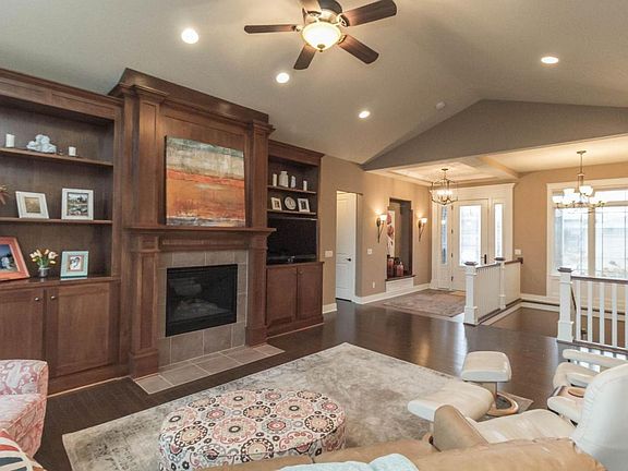 Built by Tasteful Homes, this executive ranch floor plan features 3,300 sq. feet of finished livings space with an extraordinary southern facing view. Five bedrooms and 3 baths plus large lower level rec room and bar area for entertainment or quiet family gatherings. Open floor plan, hardwood & tile floors, Birch cabinetry, granite countertops and gas range. Central vac pan system in kitchen. Large master with his and her sinks, tile master shower and large walk-in closet. Cedar deck and brick patio perfect for entertaining or enjoying the view of the pond. Pre-wired for theater system in basement family room. Must see to appreciate all the unique design features in this home.